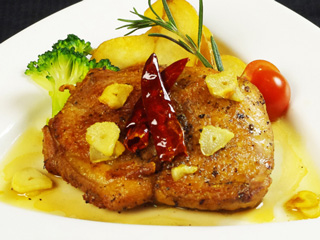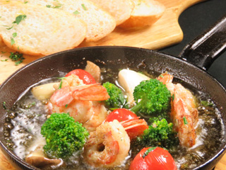 唐辛子が効いたガーリックオイルで香ばしく焼き上げた一品