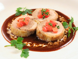 やわらかくソテーしたお肉を赤ワインとどうぞ