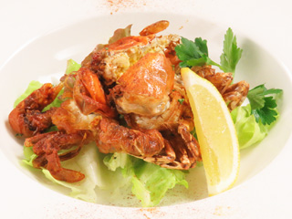 脱皮直後の軟らかいカニ ミックススパイスで殻のままどうぞ