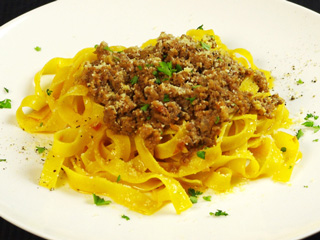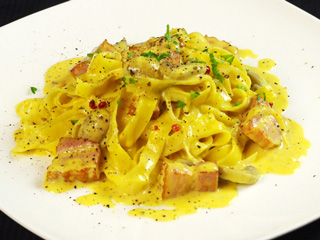 カルボナーラの濃厚なソースが平打ち麺に相性バツグンです