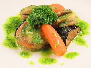 サクッと揚げたカレイをプロバンス風野菜の煮込みをソースがわりに